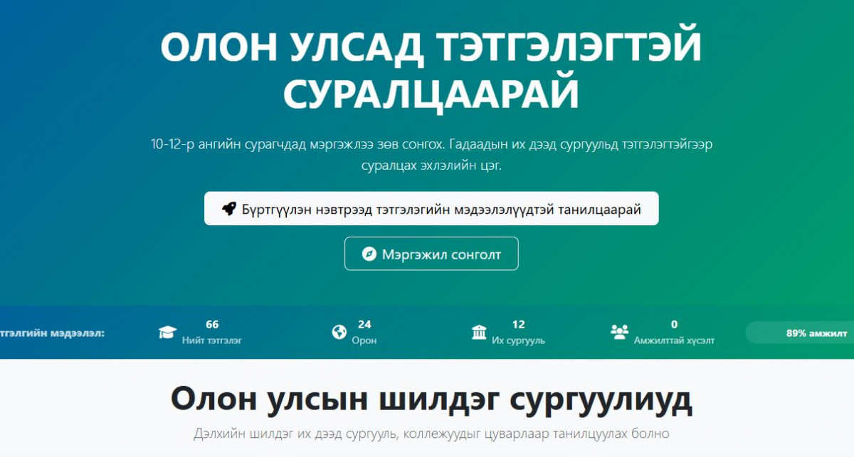 Сонгон шалгаруулалтад ТЭНЦЭЭГҮЙ суралцагчийг ЗГ-ын тэтгэлгээр суралцуу…