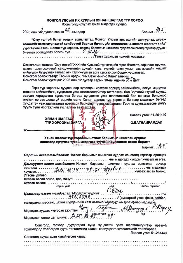 "Оюутолгойн түр хорооны сонсголд очихгүй байхын учир нь: