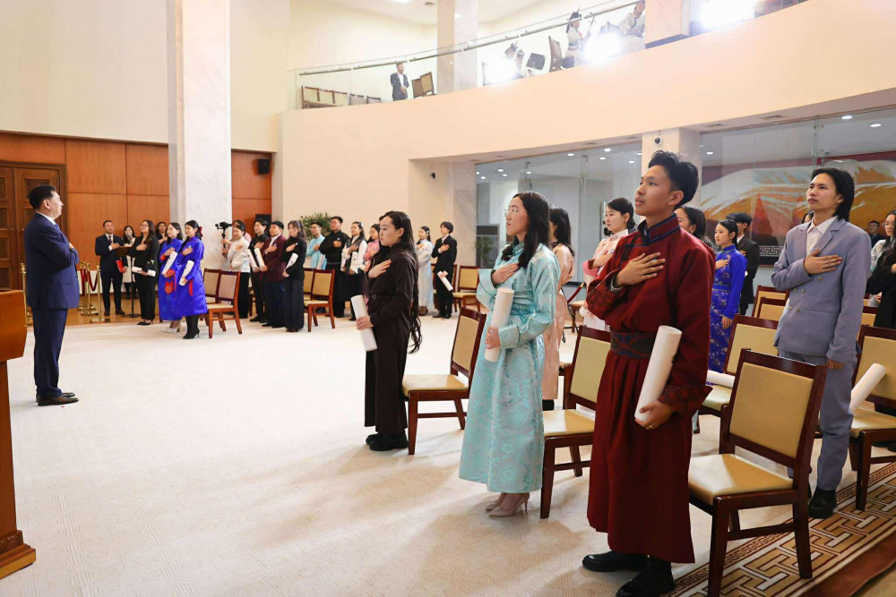 Тэтгэлэгт хөтөлбөрийн эзэд болж, эх орондоо бэлтгэл хөтөлбөрт суралцаж байгаа оюутнуудад Ерөнхийлөгч У.Хүрэлсүх сурлагын өндөр амжилт хүсэж, захиа, даалгавар гардууллаа.
