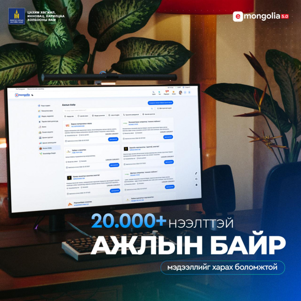 Монгол Улсын хөдөлмөрийн зах зээлд ажил олгогч, ажил горилогчдыг холбож, иргэдийн хөдөлмөр эрхлэлтийг дэмжих хүрээнд нээлттэй ажлын байруудын мэдээллийг нэг дороос харах, ажлын анкетаа олон сувгаар илгээх боломжийг бүрдүүлэх зорилгоор “И-Монгол академи” УТҮГ, “Зангиа Портал” ХХК хамтран E-Mongolia системийн “Ажлын байр” цэсийг бүрэн шинэчилж, илүү хүртээмжтэй, нэгдсэн хэлбэрт орууллаа.